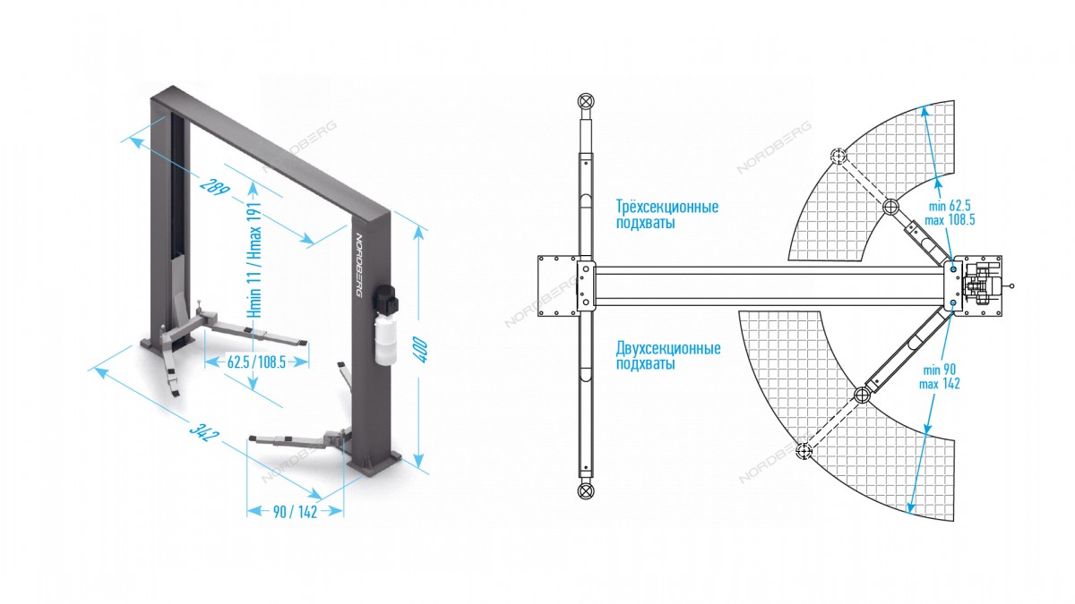 - В комплект входят проставки высотой 100 мм для увеличения высоты подхвата рамных автомобилей и анкерные болты M20x200
